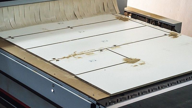 [...] La taille de l’entreprise, le rendement et l’exigence de devoir réaliser des pièces uniques ont parlé en faveur du Nesting. Mario Esch se décide pour la Dynestic 7535 avec ordinateur central Nextec 4.0 de Holz-Her. En effet, des utilisateurs référents lui ont confirmé que l’échange de données fonctionne très bien avec RSO. De plus, il était nécessaire que ce soit une machine à 5 axes pour pouvoir maîtriser toutes les contraintes spatiales et économiser des agrégats. Il lui paraissait important également d’avoir le système de contrôle de production « Warehouse » de Holz-Her développé pour Nextec. Chez Mario Esch, tout fonctionne sur son propre serveur. C’est comme s’il s’agissait d’une grande marmite qui se remplit avec des pièces générées virtuellement par RSO pour des commandes diverses et à produire ensemble. Warehouse optimise alors les plans de découpe, génère les programmes Nesting et les étiquettes avec toutes les consignes de fabrication et distribue les listes de pièces et de commandes. Warehouse détermine la séquence du travail à l’atelier et la manière dont le menuisier doit préparer les panneaux empilés.