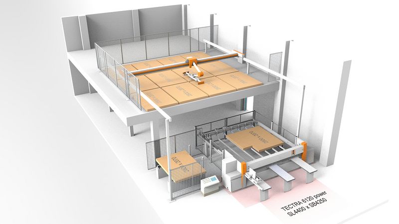 L’entreprise travaille depuis 2014 avec des machines HOLZ-HER et utilise depuis lors un centre d'usinage CNC 5 axes PRO-MASTER 7225. Une scie à panneaux horizontale TECTRA 6120 power a été installée en combinaison avec un système de stockage de panneaux STORE-MASTER 5110 en 2016. Le système de stockage de panneaux de HOLZ-HER permet de gérer le stock de manière innovante et a été adapté sur mesure aux contraintes d’espace de l’entreprise Alpiger, sur deux niveaux. La scie à panneaux intégrée est au rez-de-chaussée tandis que les panneaux sont stockés en hauteur afin de pouvoir disposer de l’espace inférieur pour d’autres activités. Assisté par ordinateur, l'opérateur du système de stockage de panneaux va chercher les panneaux au niveau supérieur et les dépose sur la scie à panneaux horizontale TECTRA 6120 power du rez-de-chaussée où se fera l’usinage.